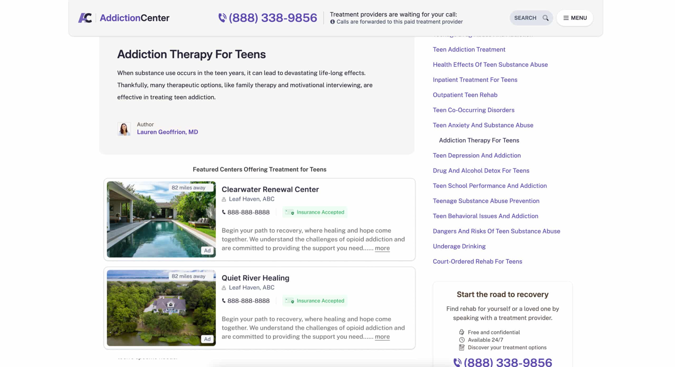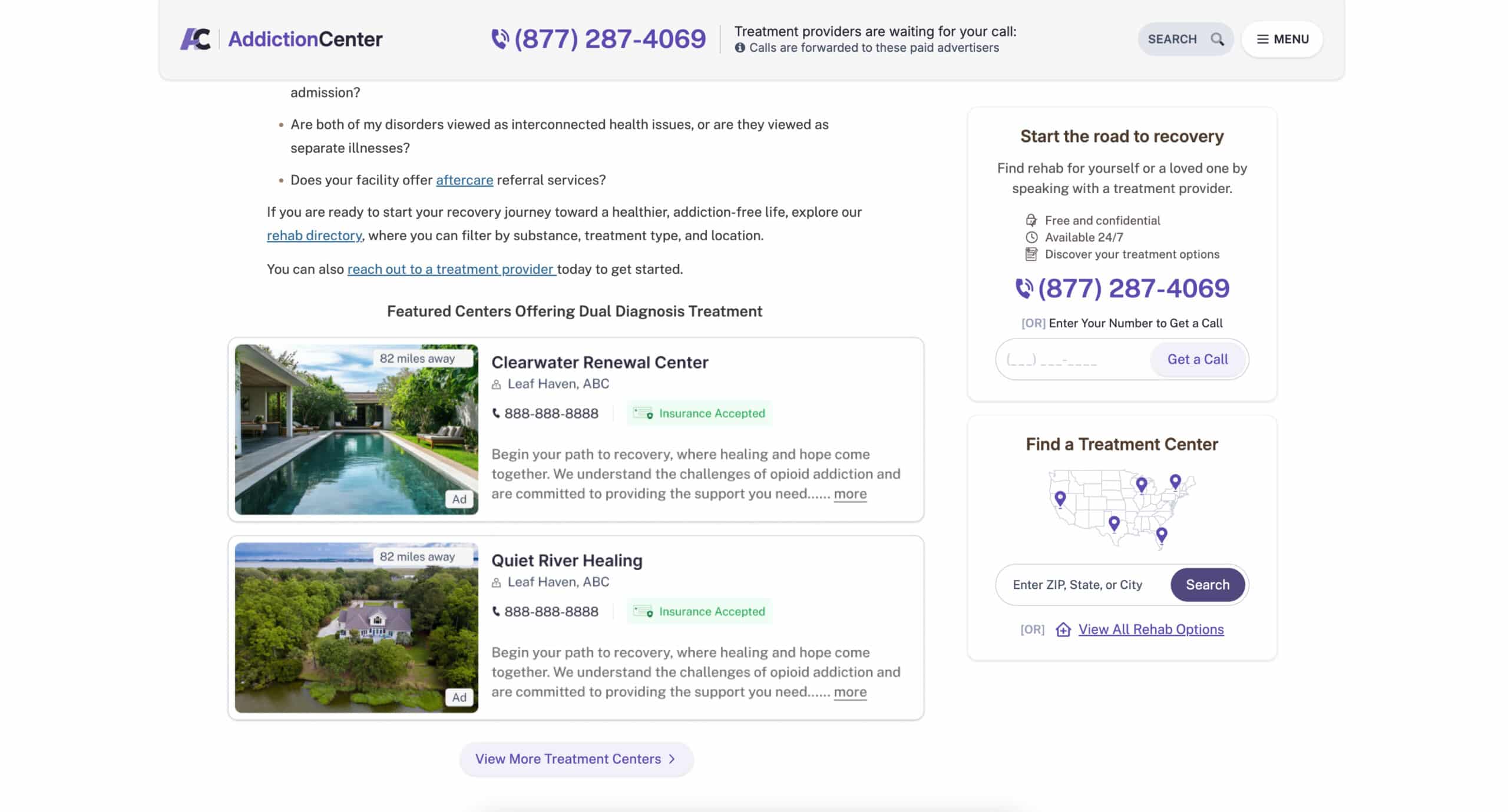 treatment centers advertising on our platform