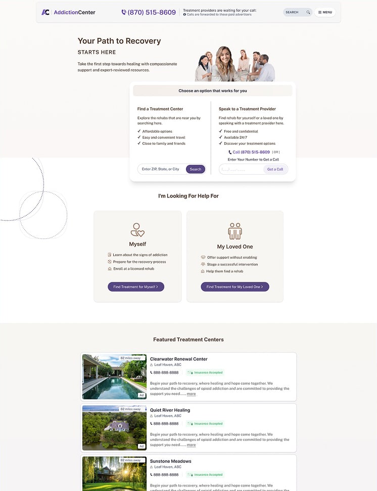 - Placement on AlcoholHelp.com and RehabSpot.com